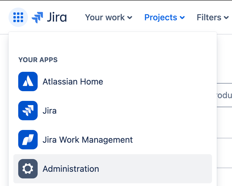 - Go to Jira Administration by clicking the tiles on the Top Left of the Screen