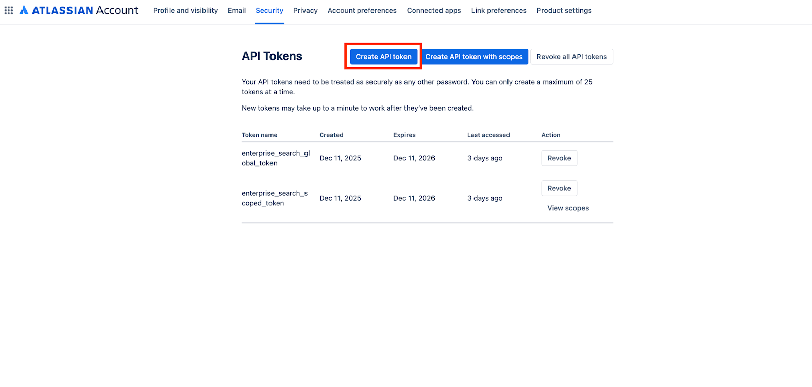 - Navigate to Security → API Tokens