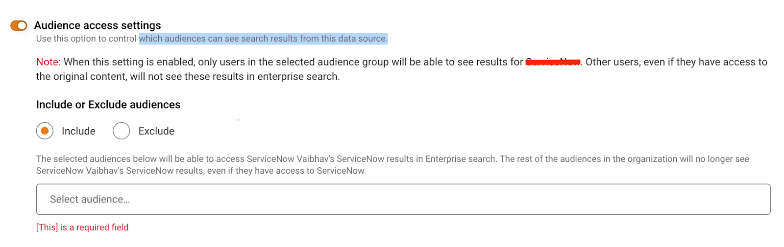 - Configure Audience based filtering.